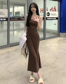 Elastic Sling Dress Women's Sleeveless Cold-shoulder