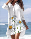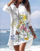 Old Women's Printed Plus Size Beach Sun Protection Shirt Dress
