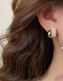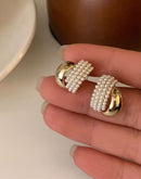 French Retro High-grade Pearl Metal Stud Earrings For Women