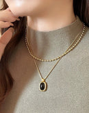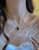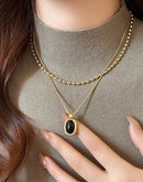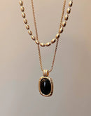 Double-layer Elegant Twin Metal Black Bead Necklace