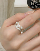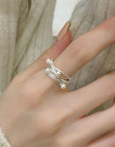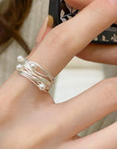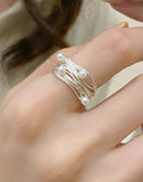 Irregular Line Feeling Multi-layer Open-end Pearl Ring Women